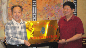 河南省保健協(xié)會會長韓文興先生向《百花散》傳人梅安富先生授協(xié)會副會長銅牌