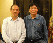 浙江天臺山梅氏宗譜 中國抗癌協(xié)會常務(wù)理事、河南省抗癌協(xié)會會長楊文獻(xiàn)教授和《百花散》傳人梅先生合影